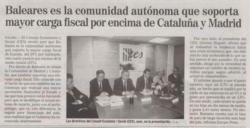 Baleares es la comunidad autónoma que soporta mayor carga fiscal por encima de Cataluña y Madrid
