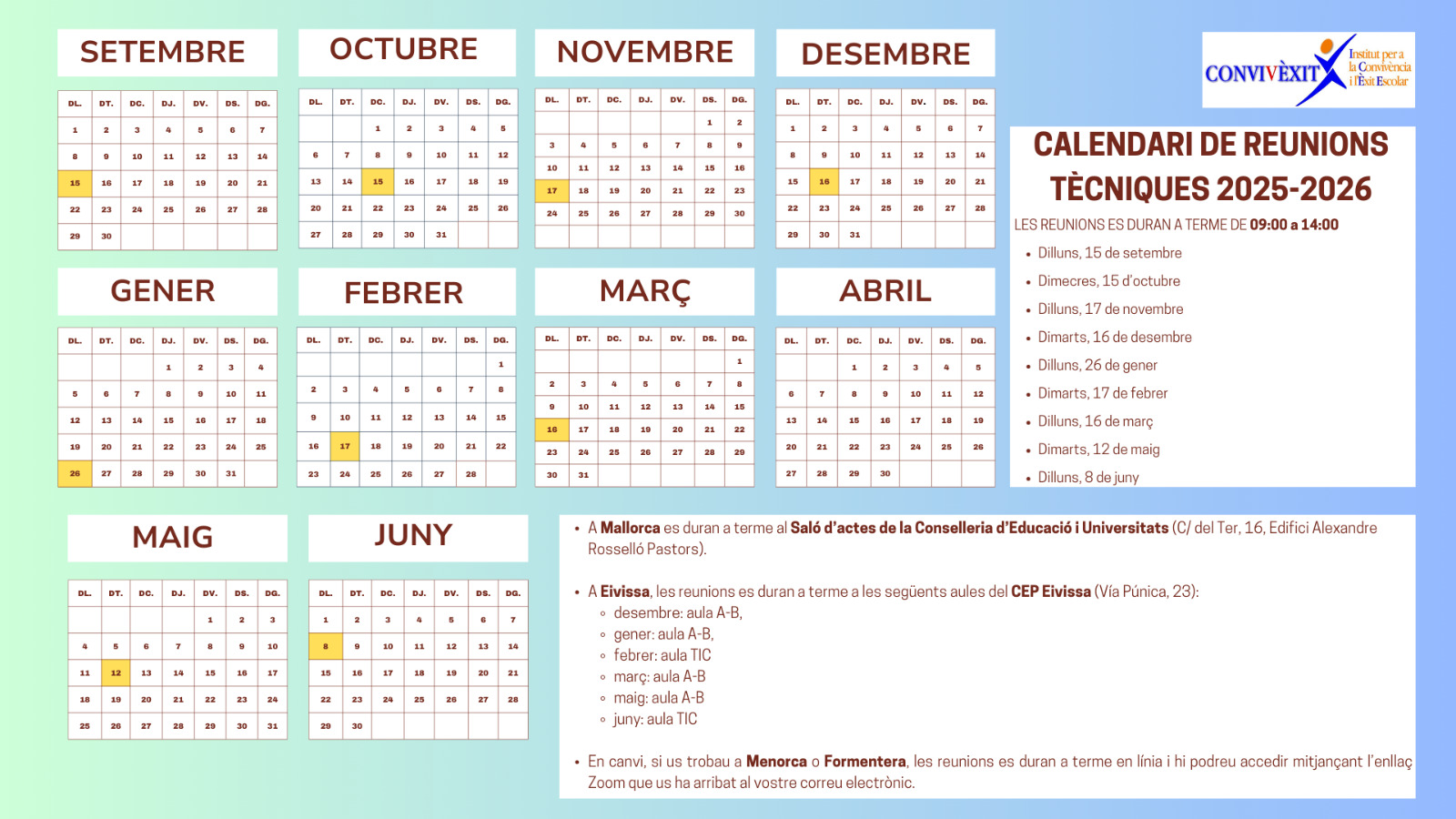 CALENDARI DE REUNIONS PER ALS PSICÒLEGS GENERALS SANITARIS DE L’ÀMBIT EDUCATIU PER AL CURS 2025-2026