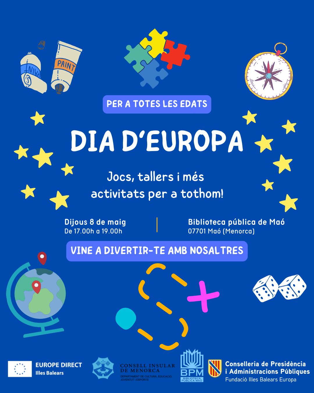 El Día de Europa, que se celebra cada año el 9 de mayo, es una oportunidad para conmemorar la unidad y la diversidad de nuestro continente. Desde Europe Direct Illes Balears, queremos compartir este espíritu europeo con la ciudadanía, y por este motivo organizamos actividades lúdicas y educativas en las cuatro islas del archipiélago.