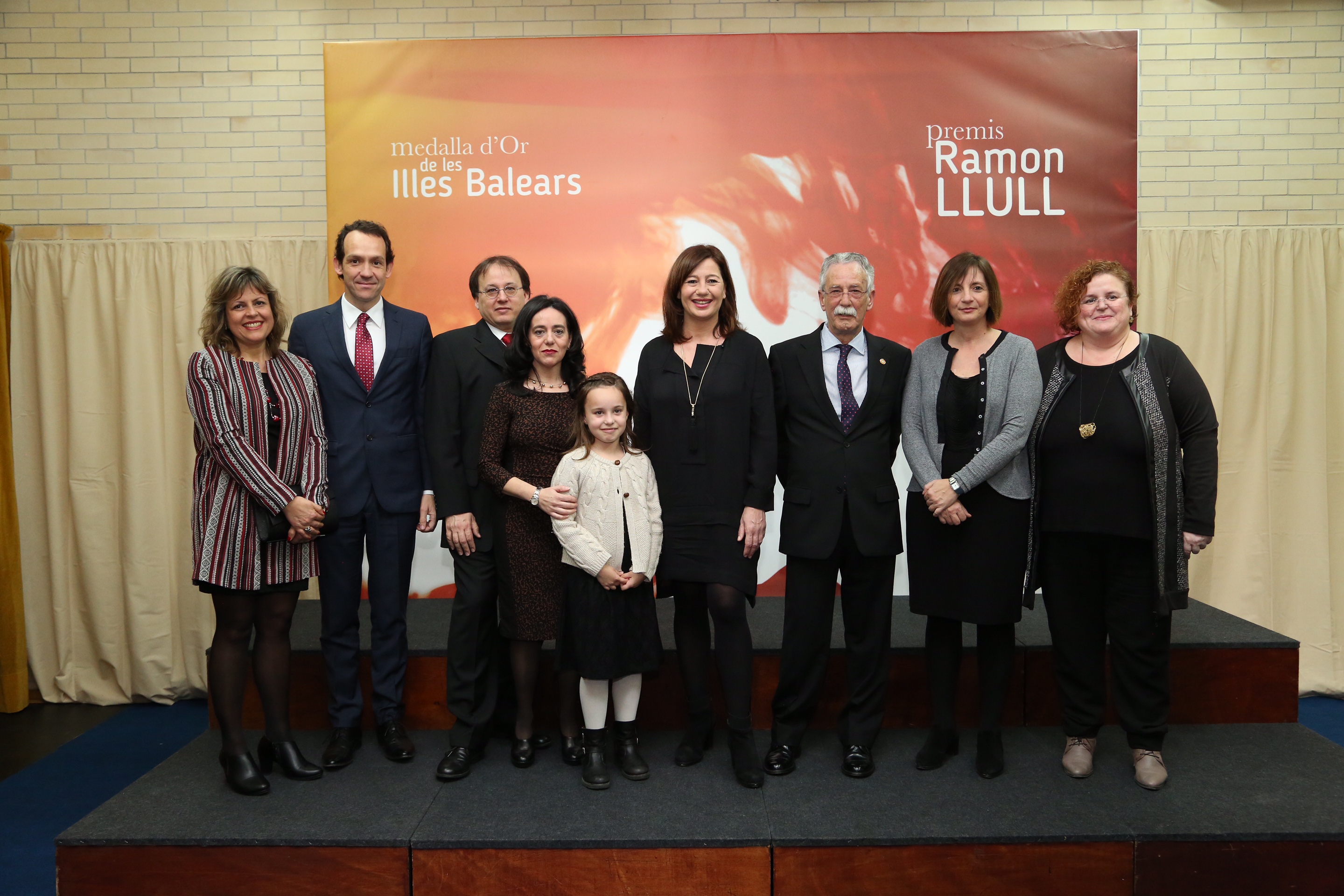 Grup de guardonats amb els Premis Ramon Llull de l'illa de Menorca, amb la presidenta del Govern, la presidenta del Consell, i els consellers de Territori, Energia i Mobilitat i de Transparència, Cultura i Esports