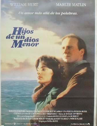 | "Fills d’un déu menor". 118 minuts 1986 Pel·lícula que tracta de la relació d'un professor d'una escola per a sords i una noia amb sordesa que treballa a l'escola com a dona de la neteja. | |