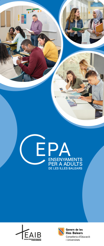Bienvenidos, Bienvenidas Este es un punto de encuentro de información en lo referente a la Educación para Adultos tanto para alumnos y docentes como para cualquier usuario interesado. Los centros de educación de adultos (CEPA) —o simplemente escuelas de adultos— ofrecen la posibilidad de adquirir, actualizar, completar y/o ampliar conocimientos y aptitudes para su desarrollo personal y profesional. Actualmente, las Islas Baleares disponen de 18 centros, 14 de los cuales están ubicados en Mallorca, 2 en las Pitiusas y 2 en Menorca. Además, 3 IES ofrecen ESPA (educación secundaria para adultos). Calendario de admisión y matriculación (curso 2025-2026) Prueba Libre de ESO (Convocatoria 2026) Prueba Libre de Bachillerato (Convocatoria 2026) Oferta formativa para el curso 2025-2026 Acto entrega de los alumnos ESPA premiados curso 2024-2025 Para hacer una consulta o una sugerencia a nuestro servicio, envíenos un correo a siepa@dgplacen.caib.es