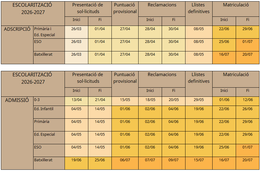 Calendaris Procés 2026-2027