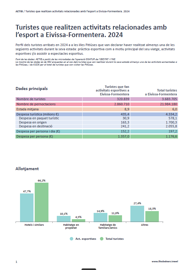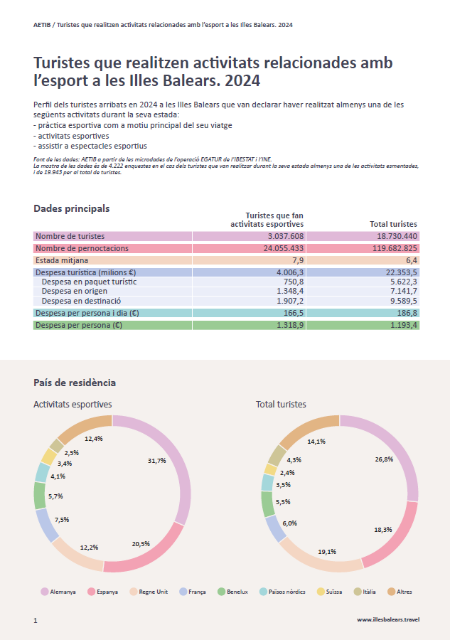 Turistas que realizan actividades relacionadas con el deporte. Illes Balears 2024