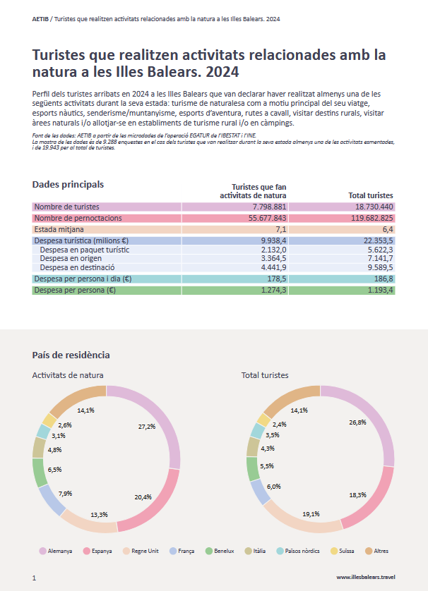 Turistas que realizan actividades relacionadas con la naturaleza. Illes Balears 2024