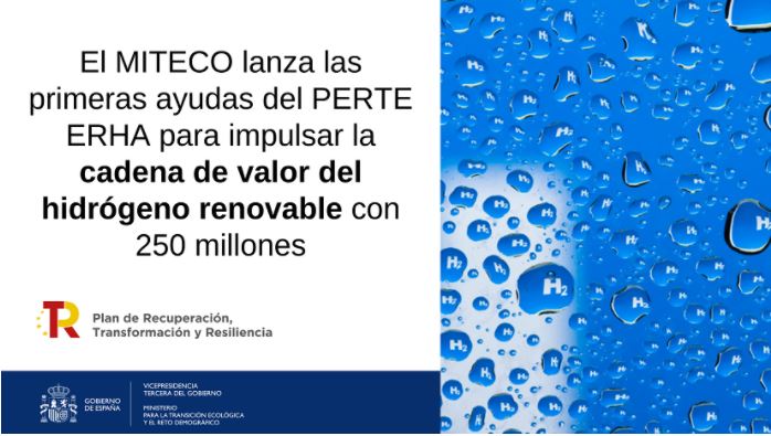 El MITECO llança les primeres ajudes del PERTE ERHA per a impulsar la cadena de valor de l'hidrogen renovable amb 250 milions