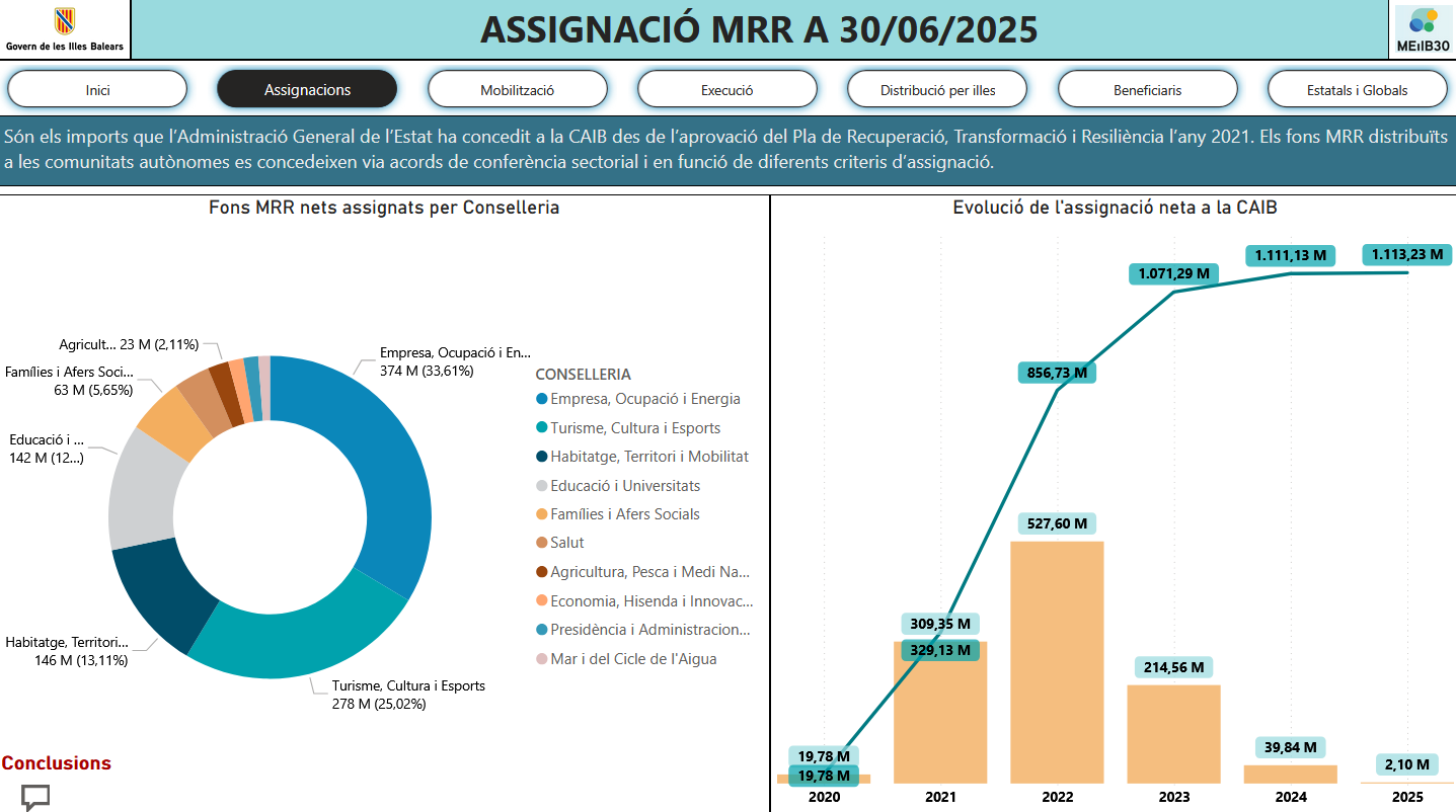 NOU! Taula d'assignacions dels fons MRR a l'Administració de la CAIB, a 30 de juny de 2025