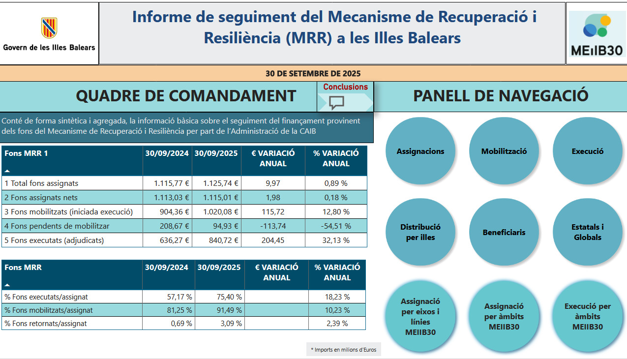 ¡NUEVO! Informe de seguimiento de los fondos MRR Illes Balears - 30 de septiembre de 2025