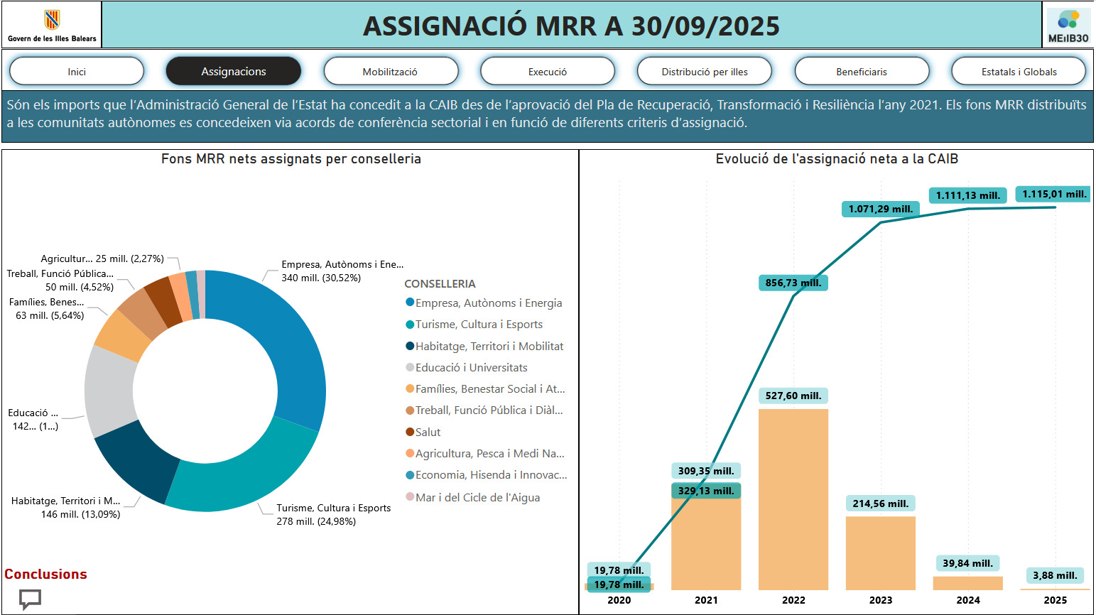 ¡NUEVO! Tabla de asignaciones de los fondos MRR a la Administración de la CAIB, a 30 de septiembre de 2025