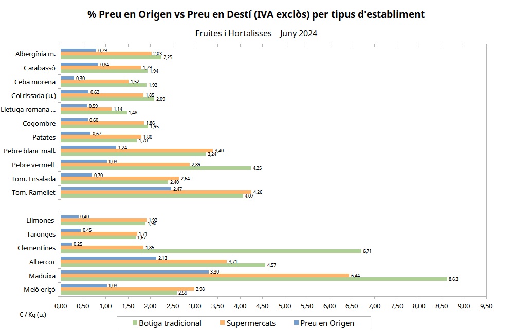 1.3 Preu en destí per tipus d'establiment (Fruites i Hortalisses) |