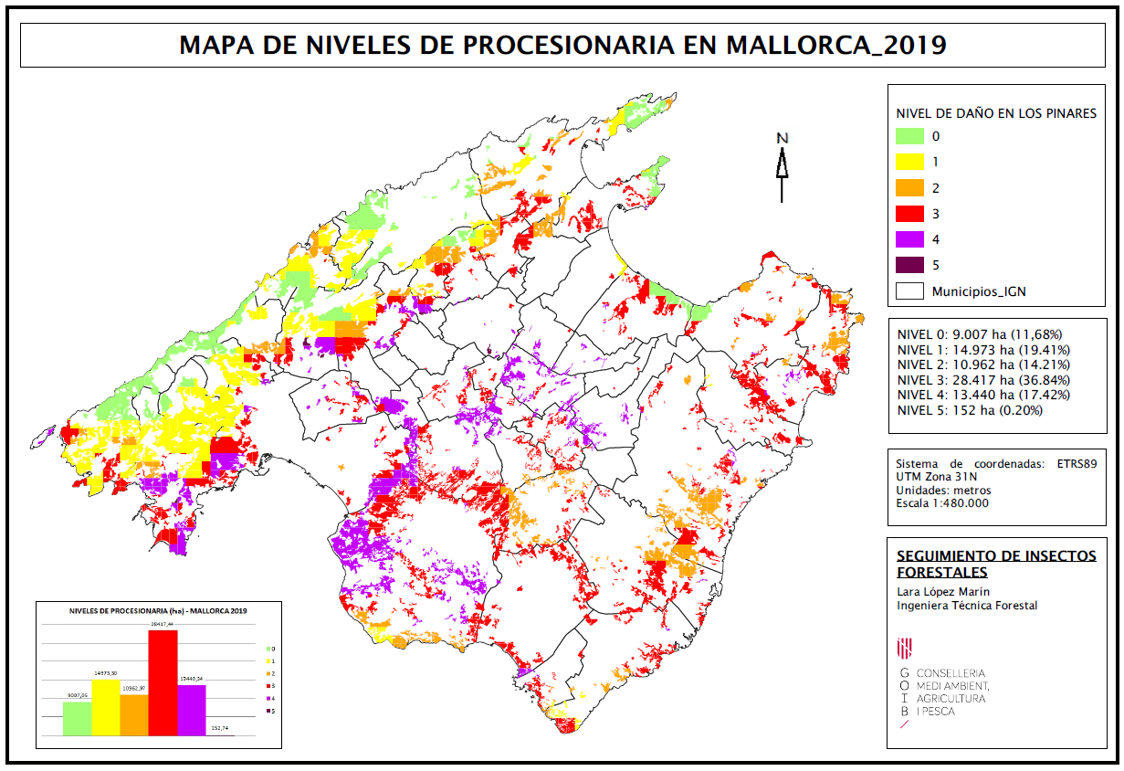 Mapes d'afectació de la processionària del pi a les Illes Balears