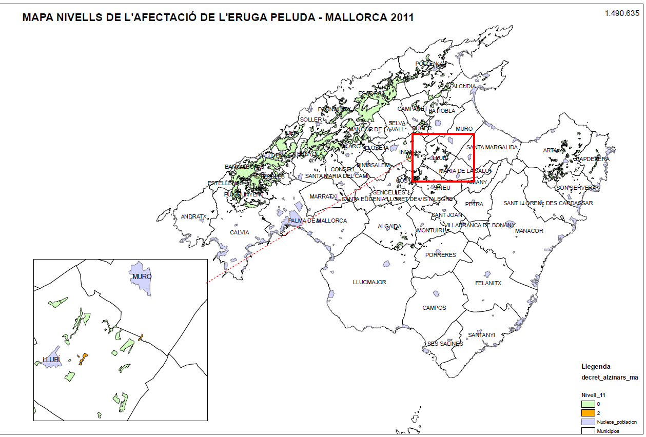 Mapes d'afectació de Paysandisia archon a Mallorca i Menorca