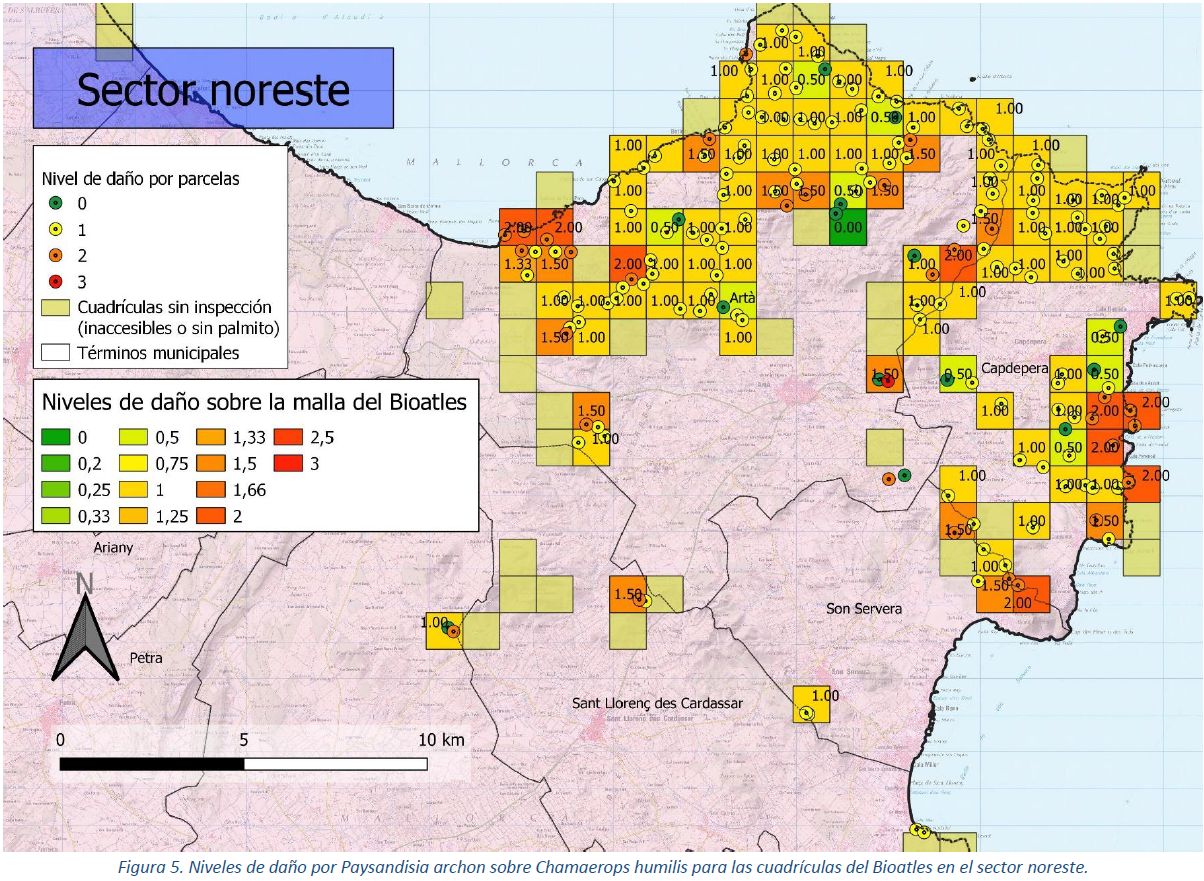 Mapes d'afectació de Paysandisia archon a Mallorca i Menorca
