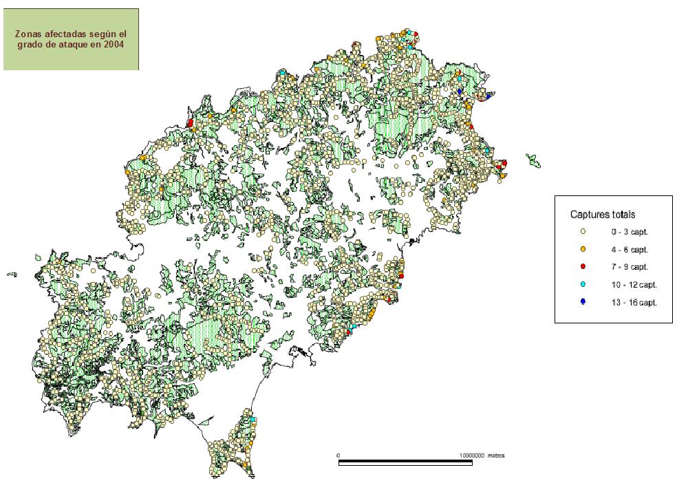 Mapes d'afectació de la processionària del pi a les Illes Balears