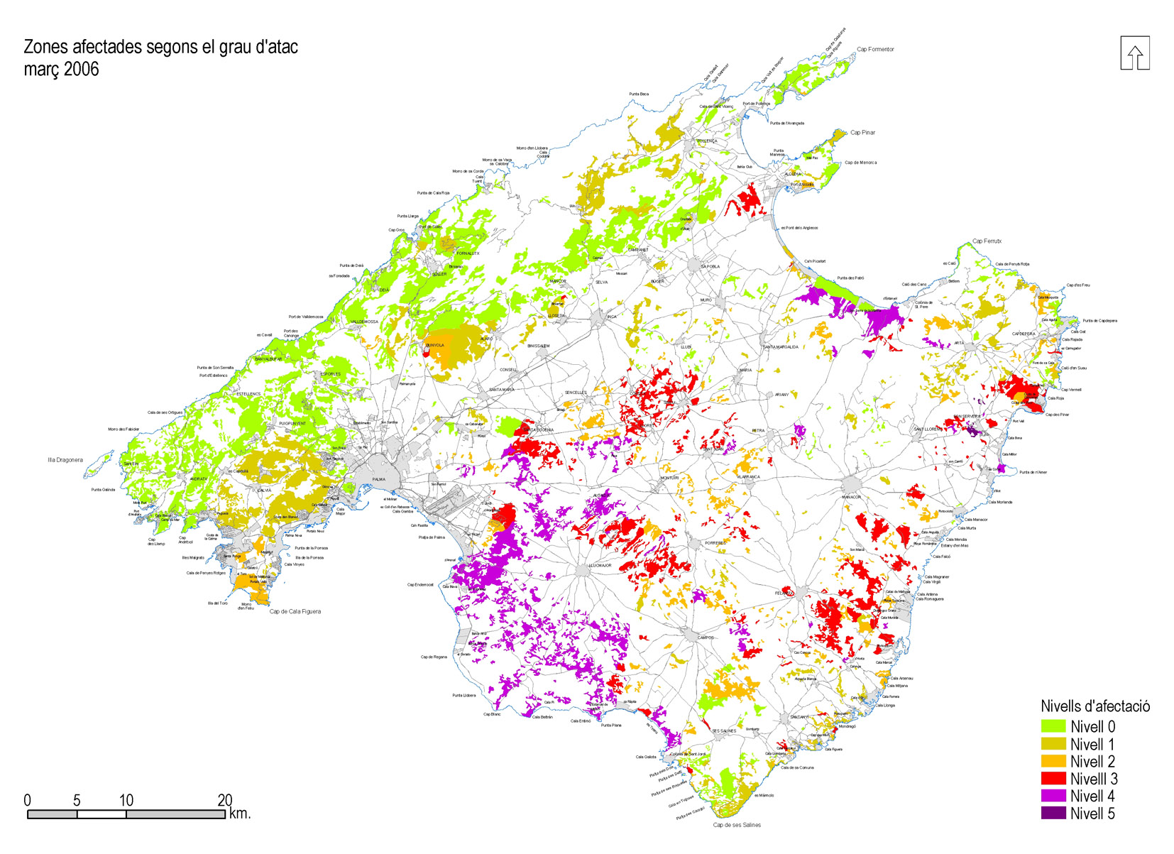 Mapa d'afectació de la processionària del pi - 2006