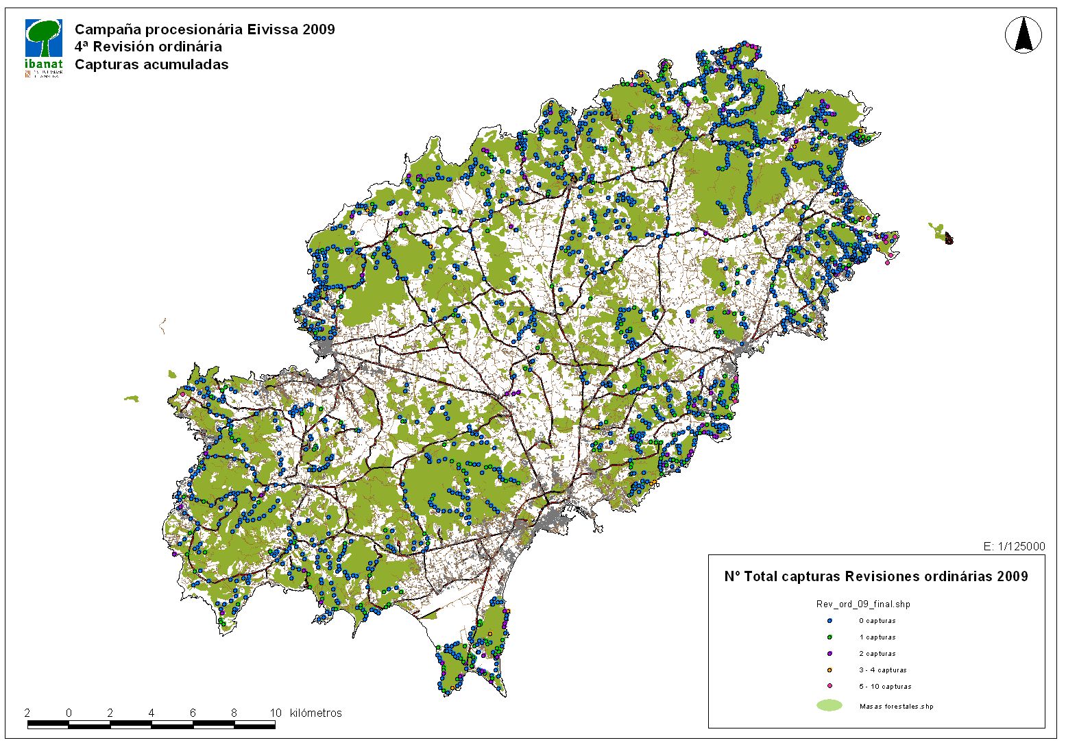 Mapa d'afectació de la processionària del pi - 2009