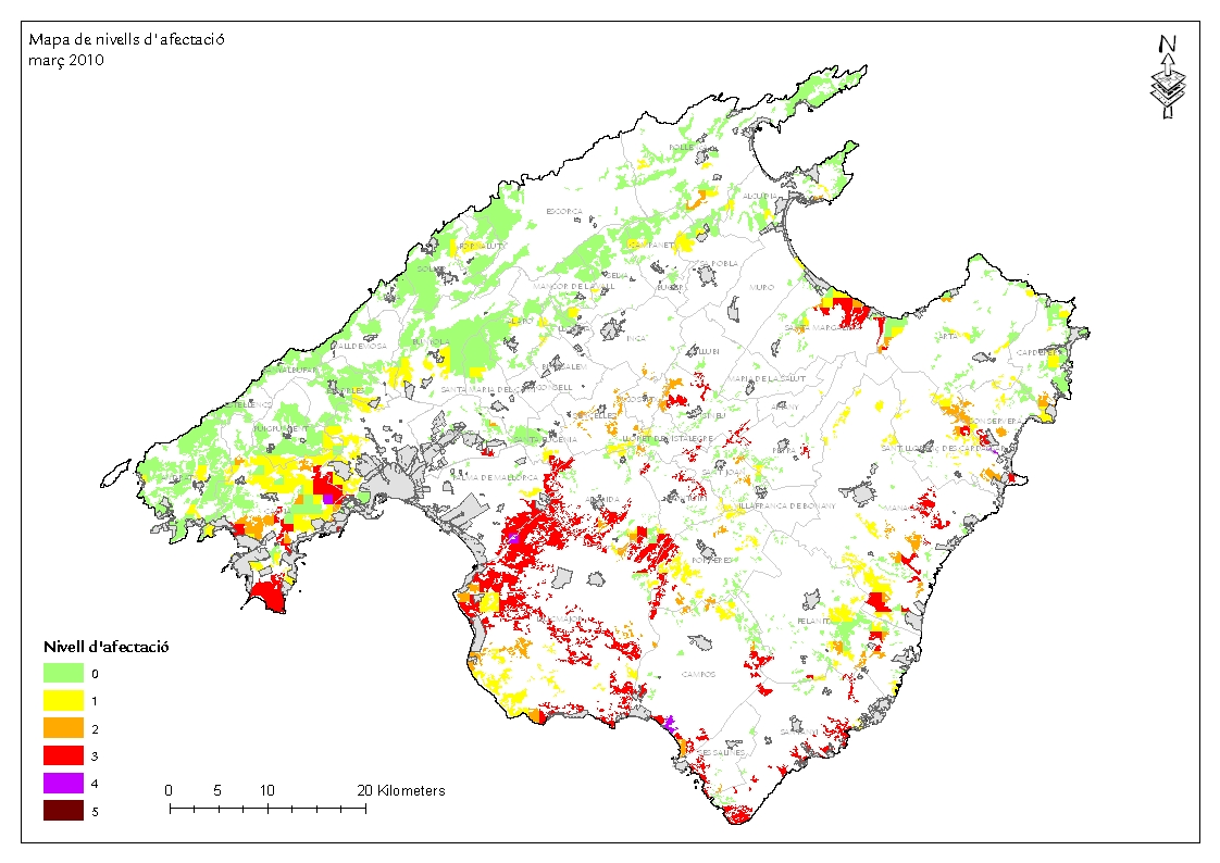 Mapes d'afectació de Paysandisia archon a Mallorca i Menorca