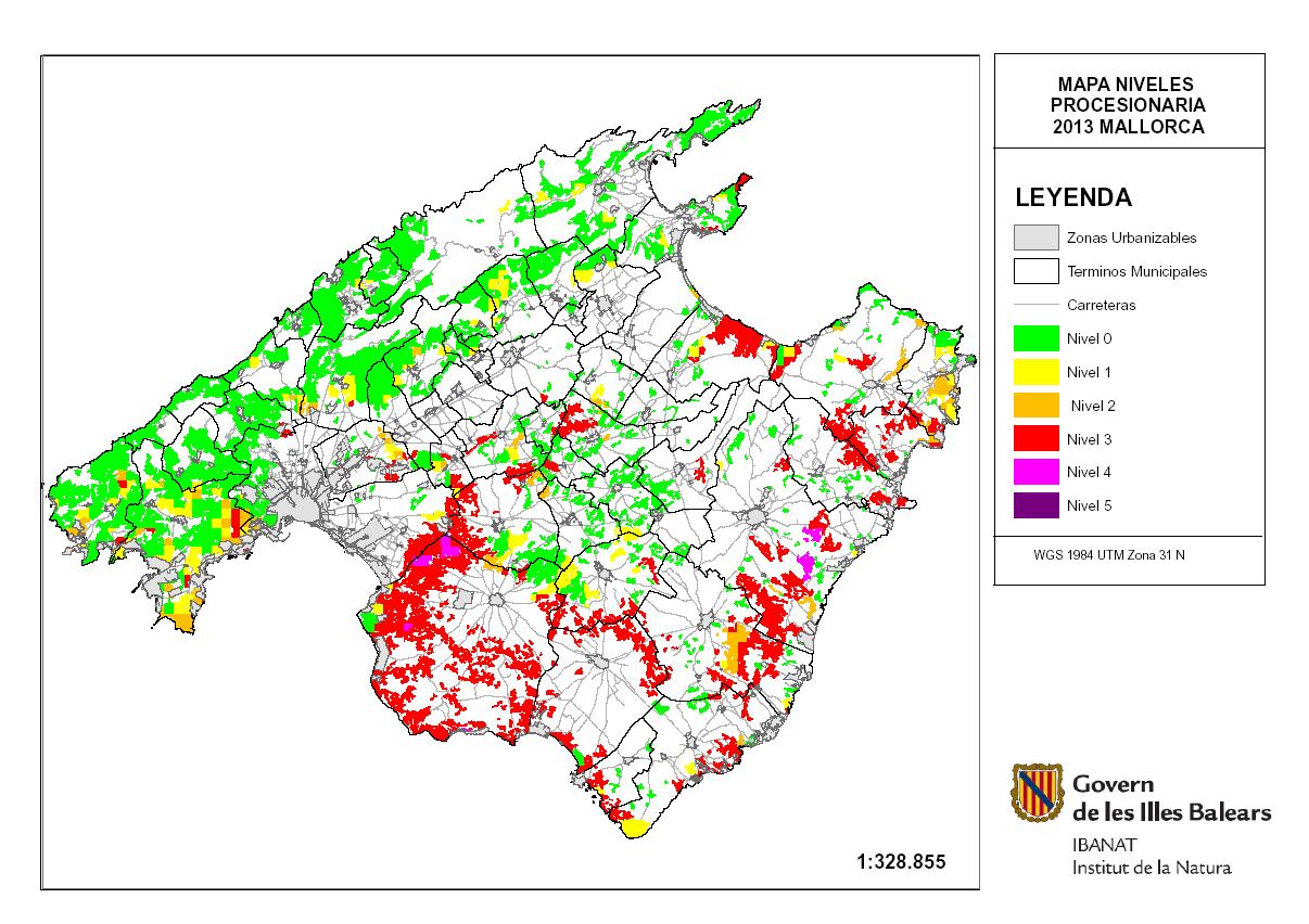 Mapes d'afectació de la processionària del pi a les Illes Balears