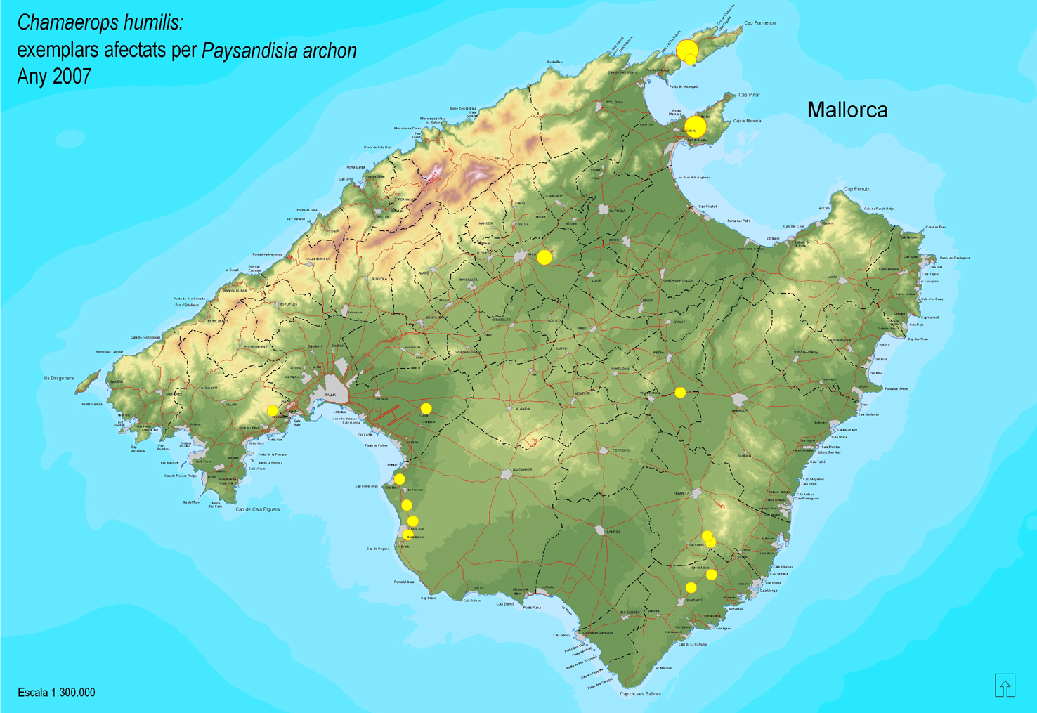 Mapa de afectación de Paysandisia Archon en Mallorca - 2007.