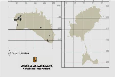 Mapa de afectación de Paysandisia archon en Menorca - 2009